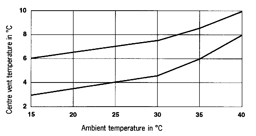 Centre vent temperature as a function of ambient temperature