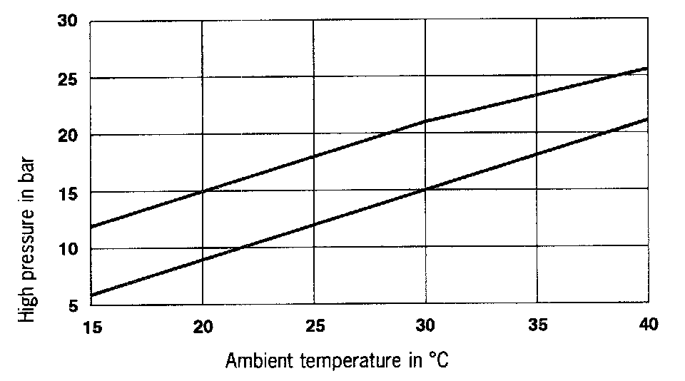 High pressure in cold circuit as a function of ambient temperature