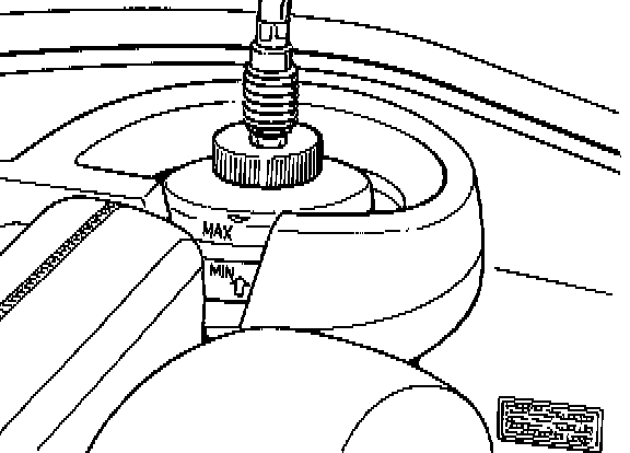 1. Fill the fluid reservoir up to the upper edge with new brake fluid. Connect bleeding device to the fluid reservoir.