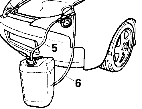 6. Connect the filler hose -5- of the vacuum pressure gauge at the canister connection; put the the return line -6- of the Venturi nozzle into a collecting container.