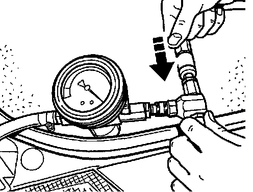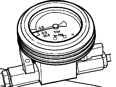 ^ After both shutoff valves on the vacuum pressure gauge have been closed and the compressed air supply has been unplugged, the vacuum must not drop. If the vacuum drops within approximately 30 seconds, there is a leaking point in the coolant circuit.