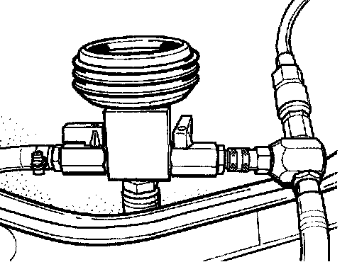 3. Connect the vacuum pressure gauge of the bleeder tool to the flexible extension. When doing so, ensure that both shutoff valves are closed (positioned 90° to flow direction)