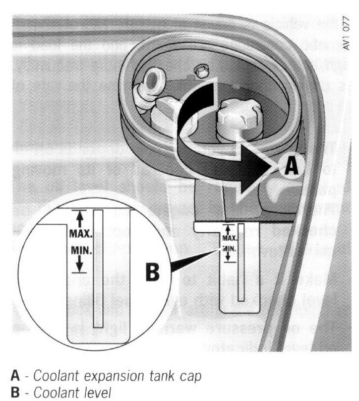 Caution: Take care when topping up coolant not to soil the luggage compartment or items of luggage.