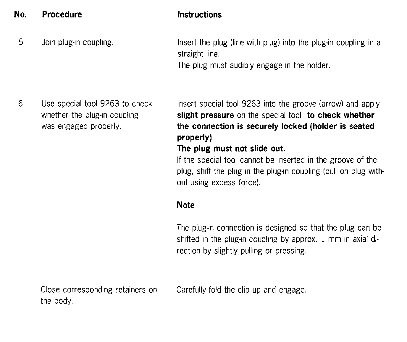 ^ Pull slightly to make sure the connection is locked properly. Use special tool 9623 for this purpose.