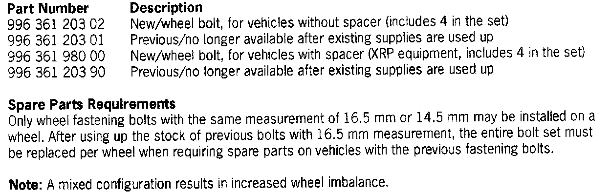 The bolts previously used for wheel mounting will be replaced by new bolts with an height of 14.5 mm (previously 16.5 mm). This results in a weight reduction in un-sprung mass. The wheel bolt for anti-theft protection is not affected by this.
