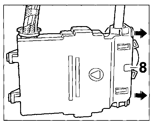 2. Carefully lever off the cover -A-, e.g. with a screwdriver -arrow-. This will break the locking tabs and the cover can be removed.