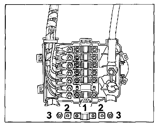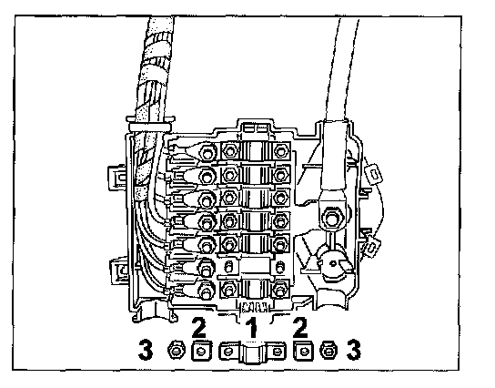 1. Insert new fusible element -1-, using new washers -2- and new hexagon nuts -3- M 5. Tightening torque: 4 Nm (3 ftlb.).