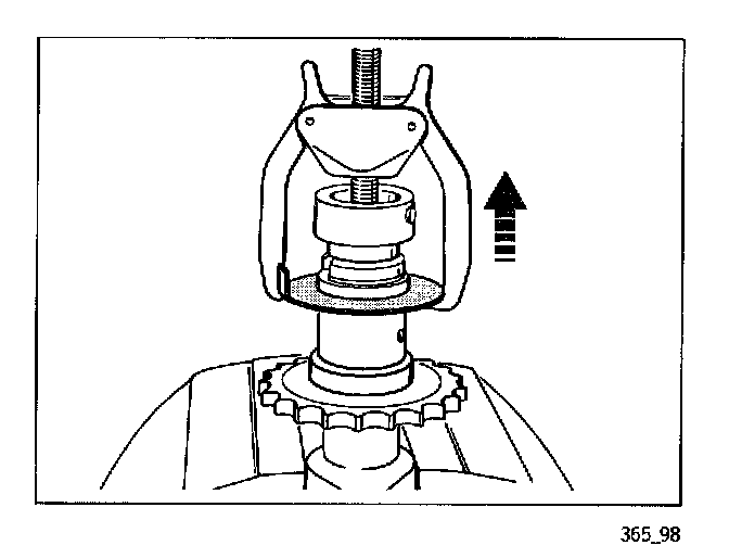 Place a spacer, e.g. VW 545/2, between the spindle and camshaft.
