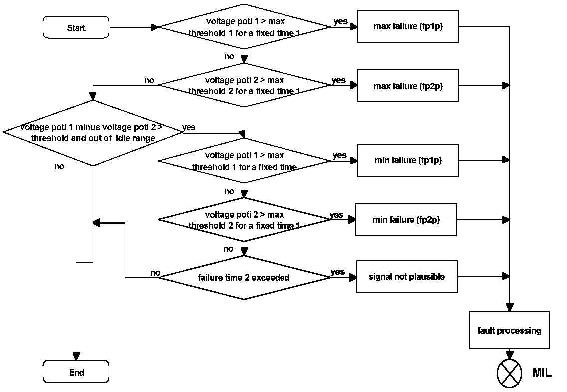 This function has to calculate the standardized accelerator pedal angle from both of the potentiometer voltages of the pedal position sensor.