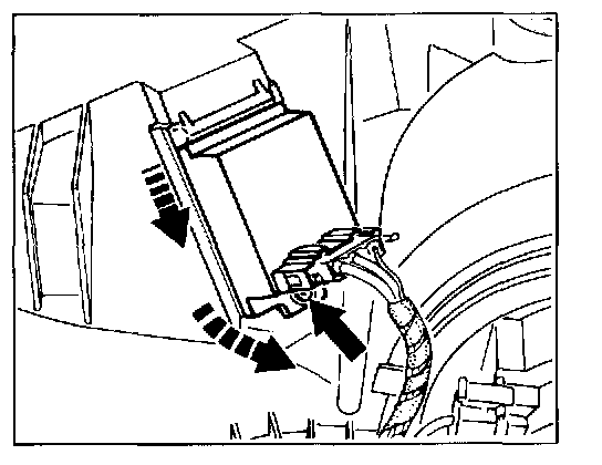 1. Remove footwell bulkhead and right air guide. Unscrew fastening screw and detach the blower driver from the heating/air-conditioning unit housing from below.