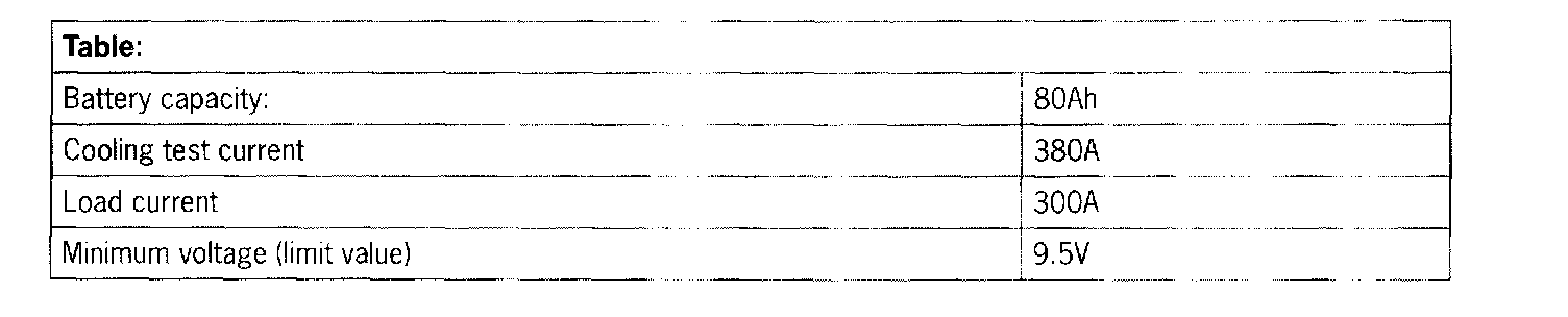 4. Carry out the battery load test according to the operating instructions and compare to the test result of the tables shown.