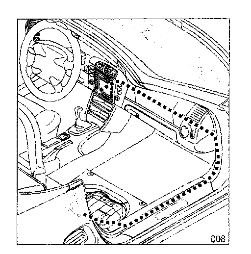 4.2.1 Route retrofit kit optical wave guide from the right seat baseframe through the wiring duct, over the A-pillar, along the dashboard to the PCM2 installation slot and secure.