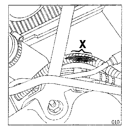 4.4.4 Cut open approximately 5 cm of protective tube of the optical wave guide set (by radiator tank), in area (X).