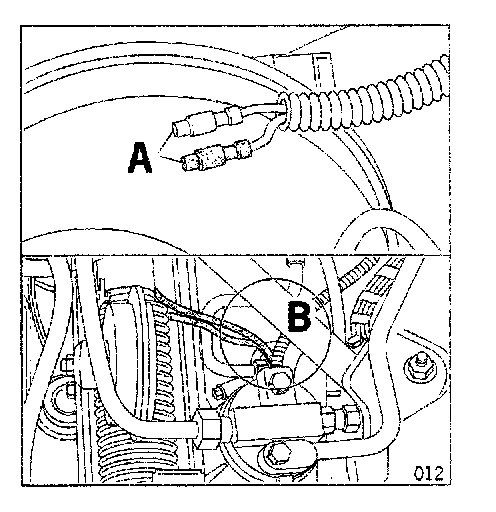 4.7 Seal the hole on the service grommet (B) with adhesive compound.