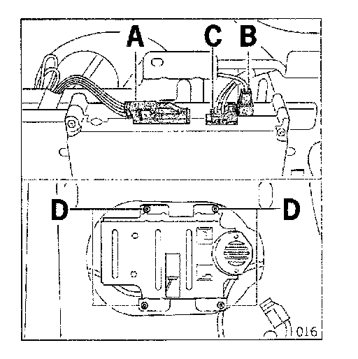 6.3 Align holder with telephone module to the floor pan assembly, and tighten with screws (D).