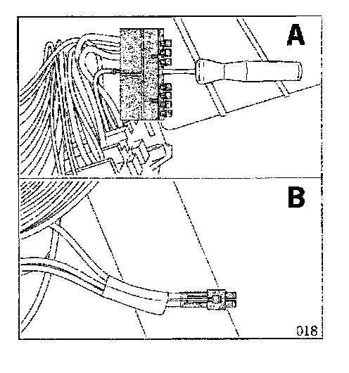 7.2.2 Press out pin of RD/GN 2.5 sq. wire with 88040 and disconnect (A).
