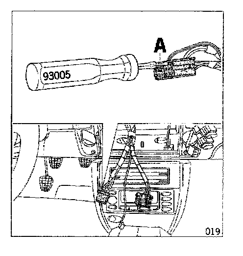 7.6.1 Press out pin of WH/RD 0.352 lead from 6-pin yellow C1 plug with 93005 (A) and disconnect.