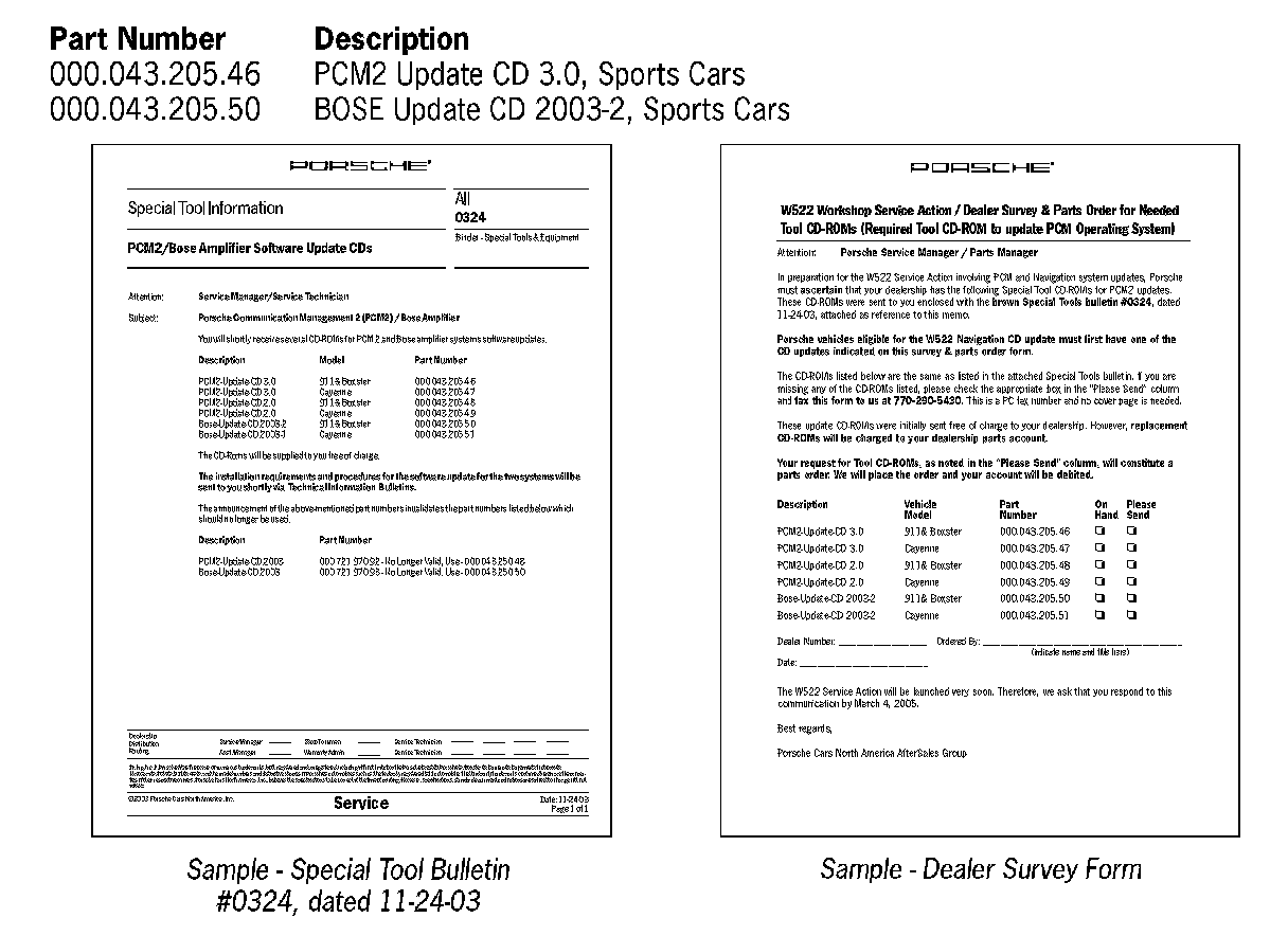 The update CDs listed below have been available to the Porsche dealer organization since November 2003 as a special tool.