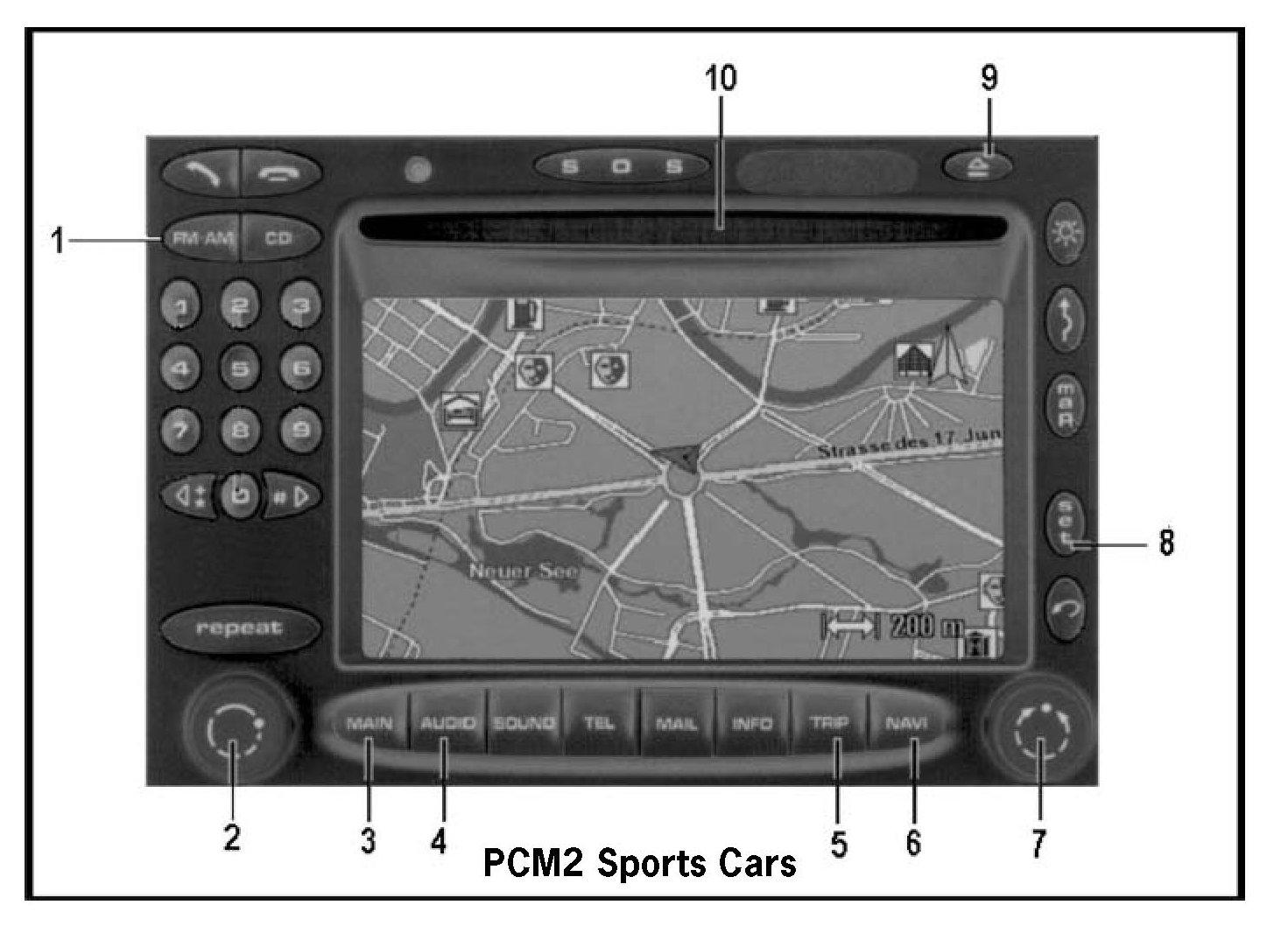 1.2 Switch on the PCM2 by pressing the On/Off switch (> PCM2 Sports Cars -2-).
