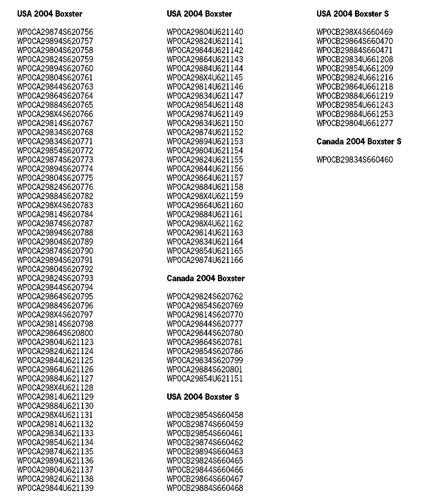 Not every vehicle in the below listed range may be affected. Use the ranges below as a general guideline. Refer to Attachment "A" to determine if a particular vehicle is eligible for this service action. Alternatively, the VIN can be checked in the Porsche e-DCS/WWS for confirmation of an open service action.