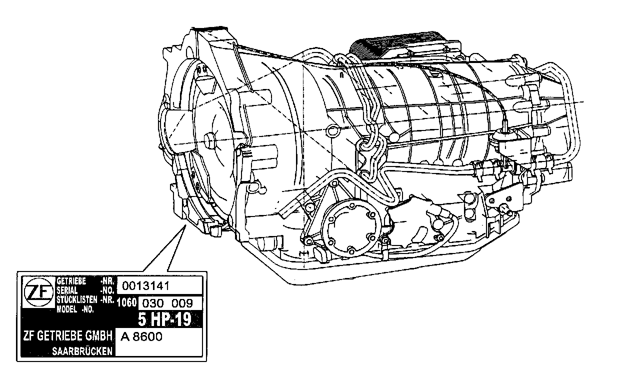 Note: there are two identification plates on the transmission. One plate is located near the ATF Cooler and the other, which can be read from underneath, is on the converter bell housing.