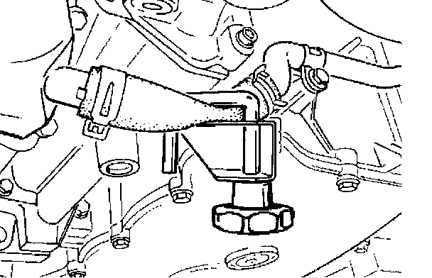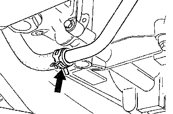 17. Relieve spring-band clamps and pull off coolant hoses on flow and return sides.