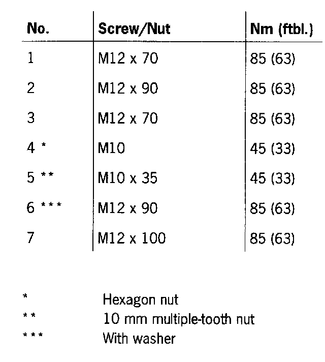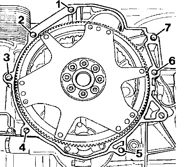 23. Unscrew transmission Engine fastening screws. For screw No. 5, use polygon wrench (10 mm, part no. 999.571.052.02).