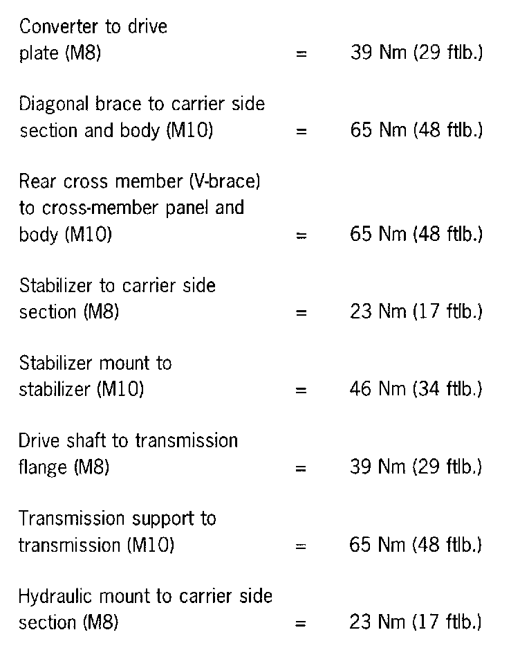 Note For reasons of space, install the right transmission support first. To do so, move transmission to the left.