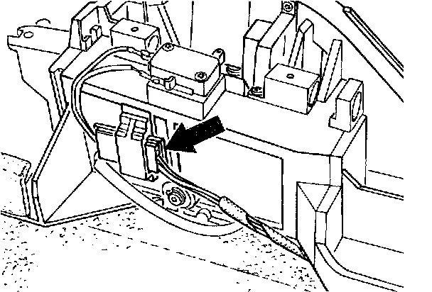 - Press the retaining clip (10) together and carefully pull the cable upward out of the support bracket.