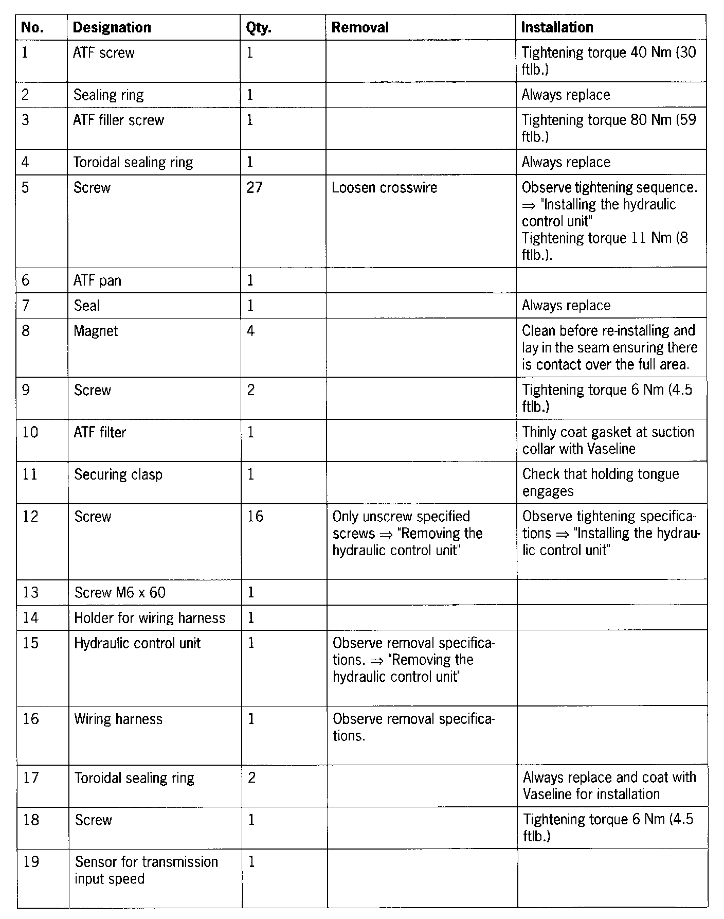 NOTE: The engine must not be started with the ATF pan removed or without ATF filling.