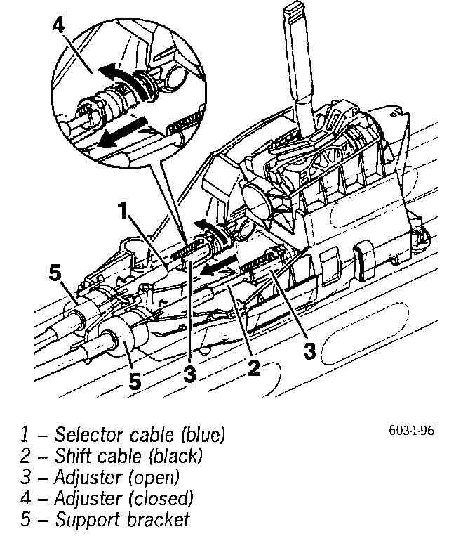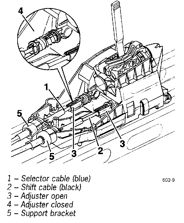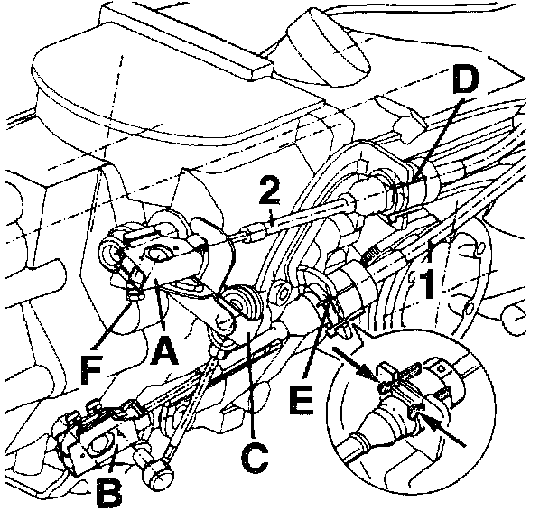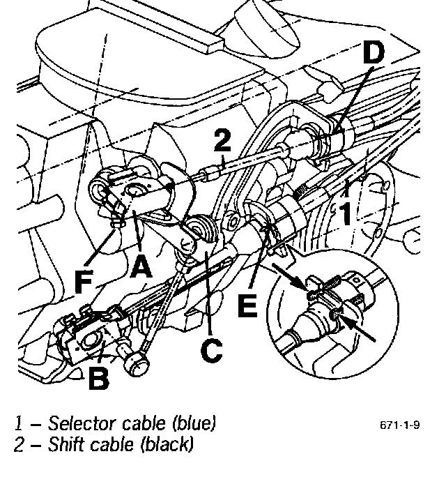 3. Disengage shift and selector cables on the transmission. Until date of manufacture 21.4.97