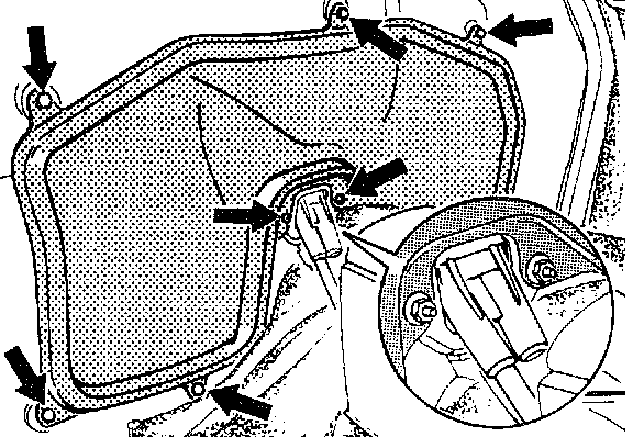 10. Remove locking piece from the rear wall and take out shift and selector cables. Take care not to soil the passenger compartment.