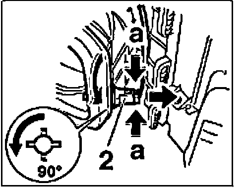 b. Slide in the temperature sensor -2- into the heating/air-conditioning unit and turn 90°.