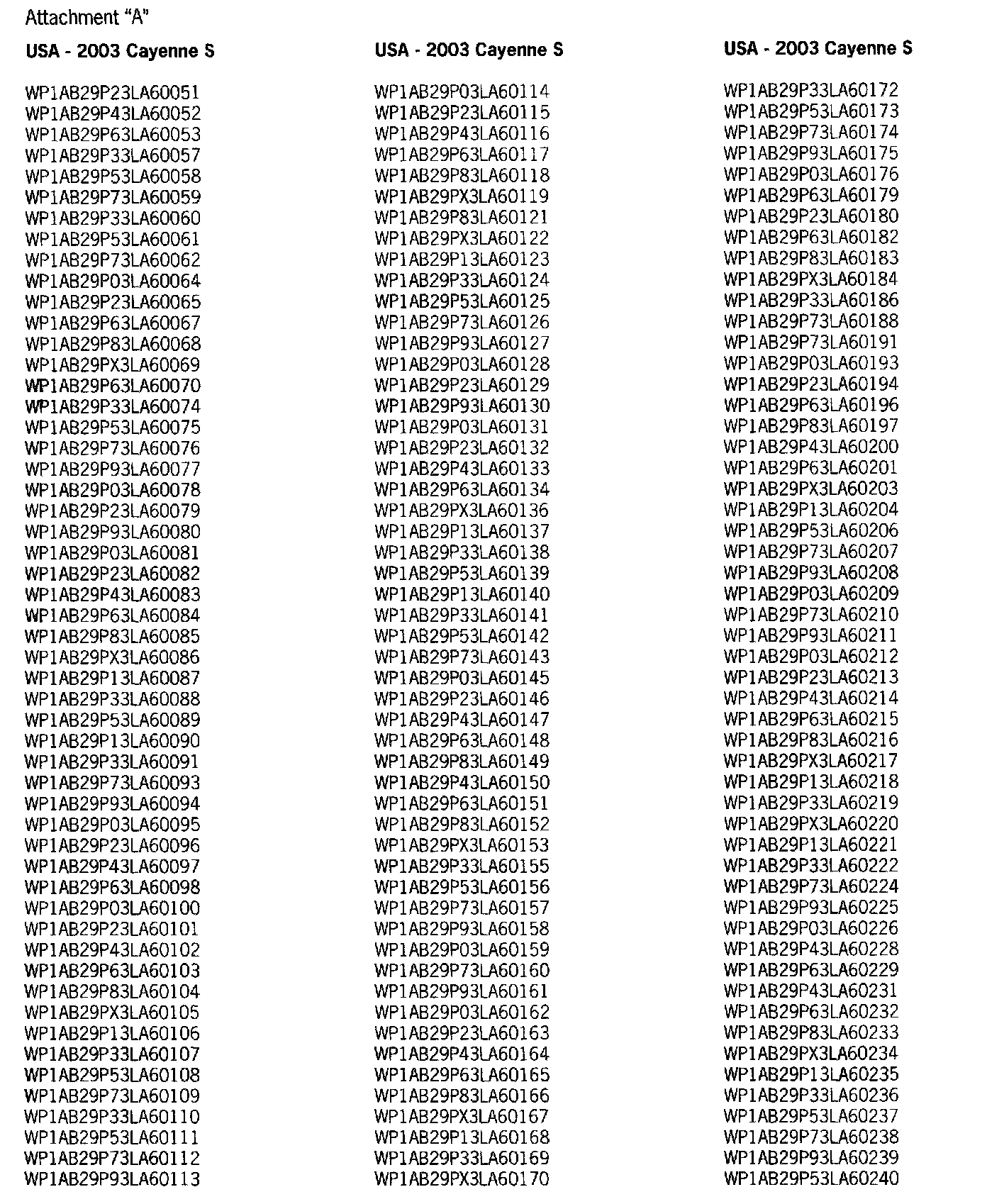 Refer to Attachment "A" to determine if a particular vehicle is eligible for this service action. Alternatively, the VIN can be checked in the Porsche e-DCS/WWS for confirmation of an open service action.