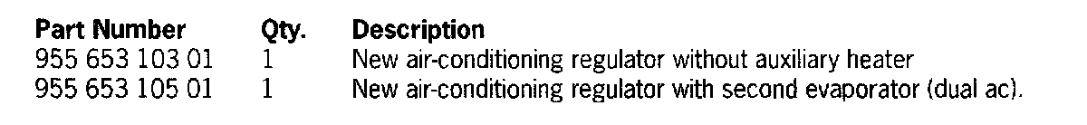 Therefore, we ask that the affected vehicles listed below have their air-conditioning regulator replaced during the Porsche Owner's next visit to your workshop.