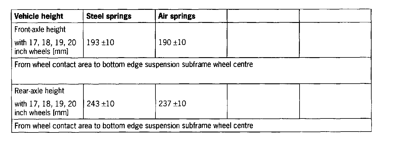 ^ Wheel alignment should not be performed for runs of between 0 and 200 km. The settling behaviour of the Cayenne is only complete after this.