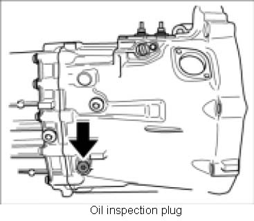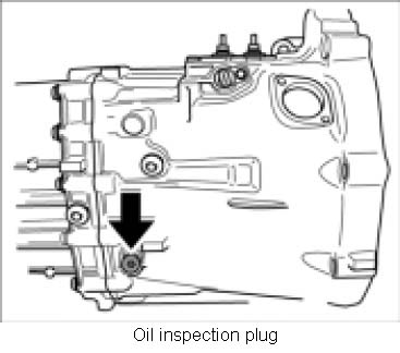 2. Fill in oil using oil filler for ATF up to lower edge of oil inspection plug -arrow-.