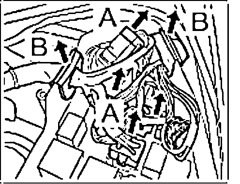 12. Position both wiring harnesses with the rubber sleeves in the housing "arrow B".