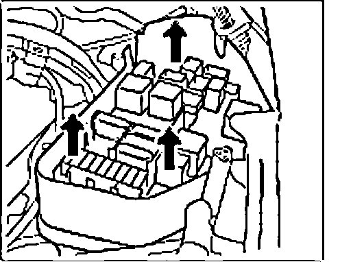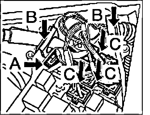 13. Release fuse carrier "arrows C" and pull it out and up "arrow D".