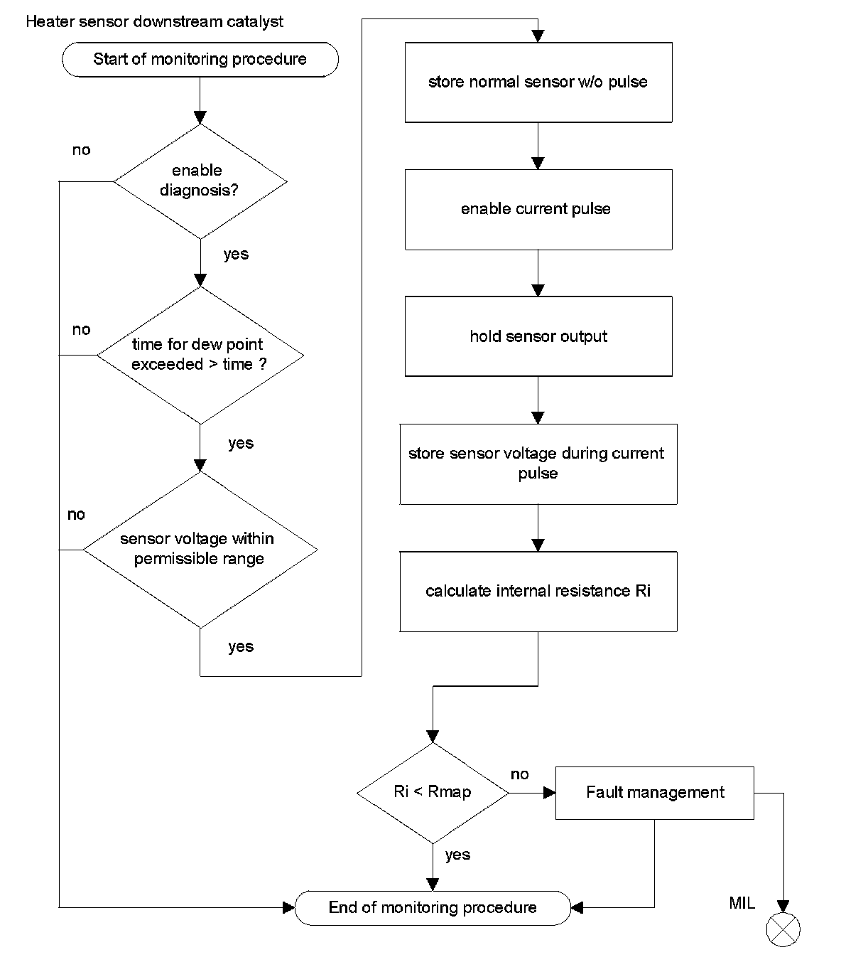 The flowchart shows the functionality to avoid an erroneous MIL illumination.