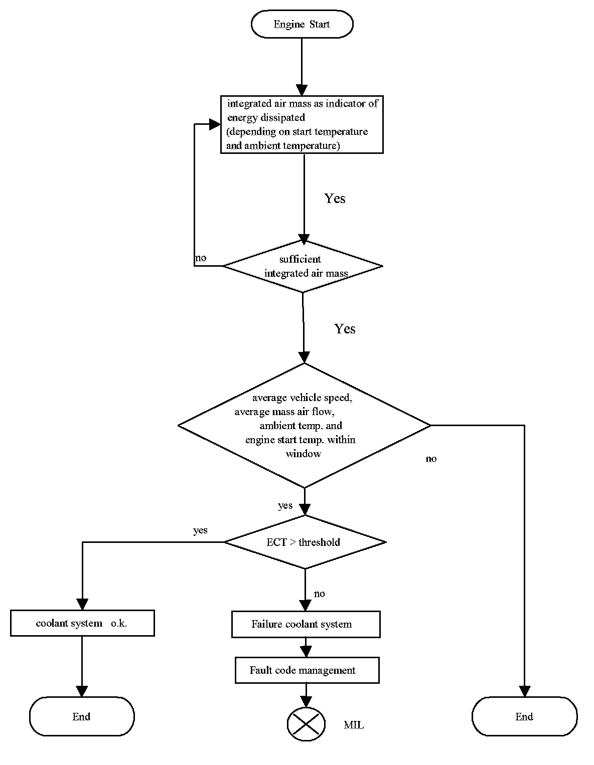 2. the adaptation factor active for a minimum time. If the adaption factor exceeds a threshold, after the cycle flag has been set, the MIL is illuminated.