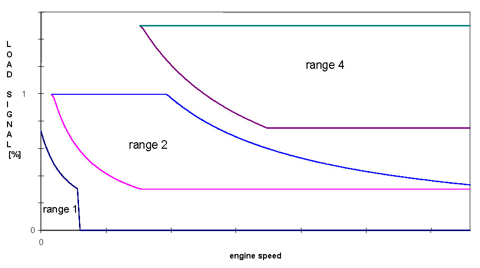 The mixture adaption has 3 adaption ranges. The learning integrators are thus activated in different speed and load ranges. The deviation of the Lambda controller from it s neutral value (1.0), is 'learned' in one of the integrators at idle, at medium load / speed, and at very high load / speed.