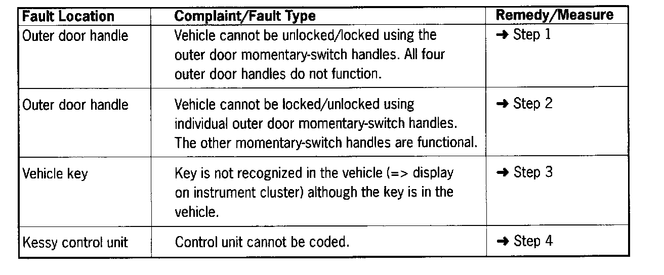 4.2 Cause 2: A version of the immobilizer/Kessy control unit is installed that cannot be re-coded to the equipment features of the vehicle.