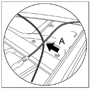 1.1. Place the power window on the door unit carrier as shown. Make sure the cable is in the correct position ( -arrow A- ).