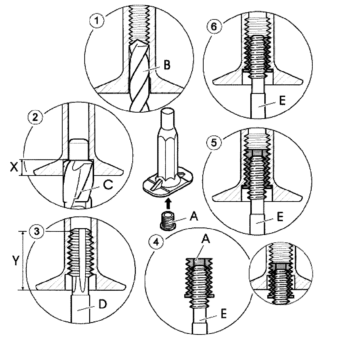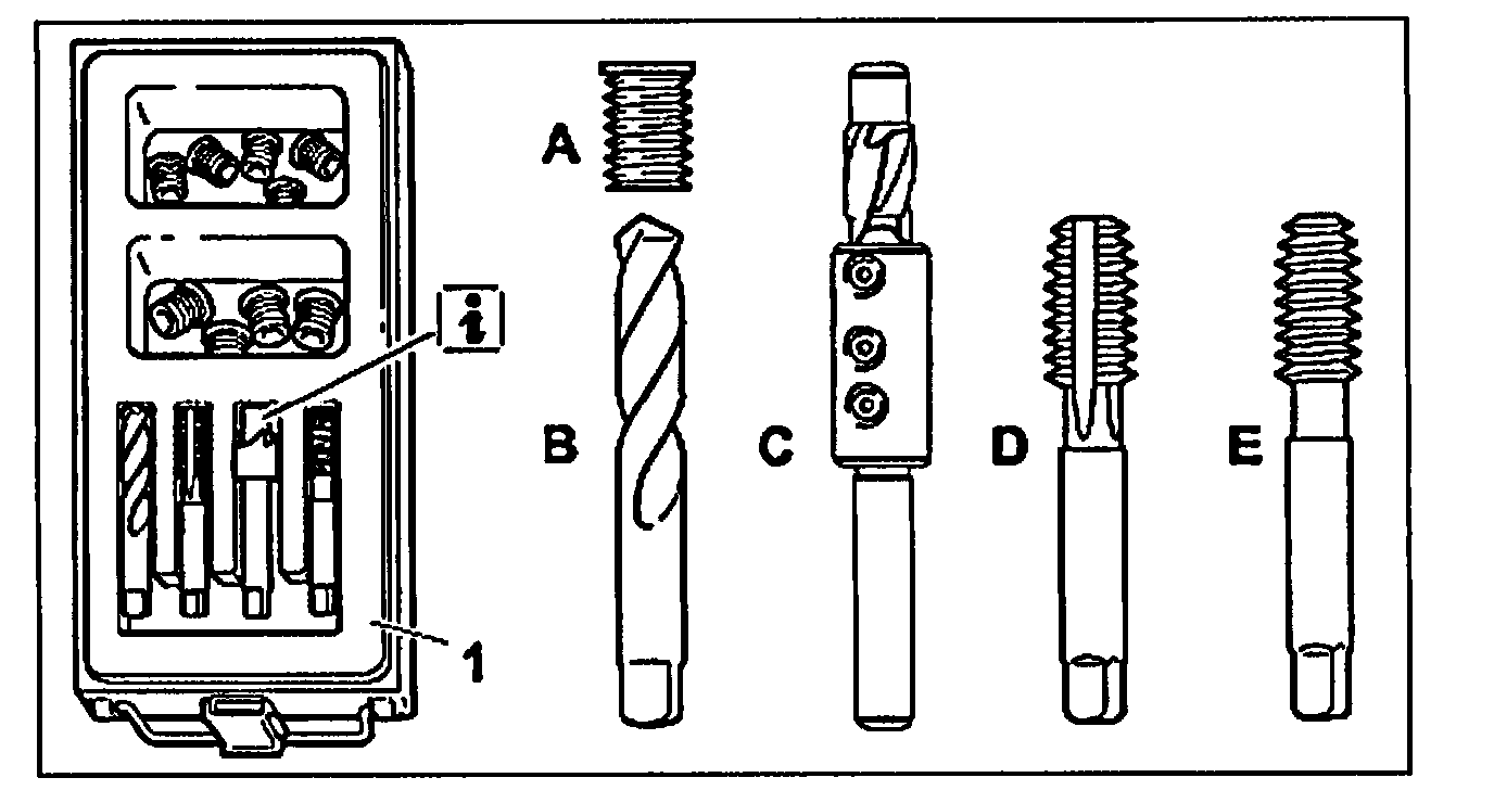 NOTE: The repair bushing must be installed recessed. To mill in the respective shoulder, the tool with the designation Spot facer for Time-Serf thread repair M14Nr. 122-2 must be used. The tool provided with the complete set supplied must not be used in this case.