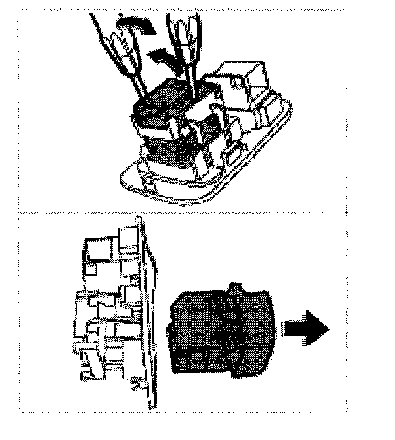 1. Insert the power window switch in the retaining bracket until it clicks into place.
