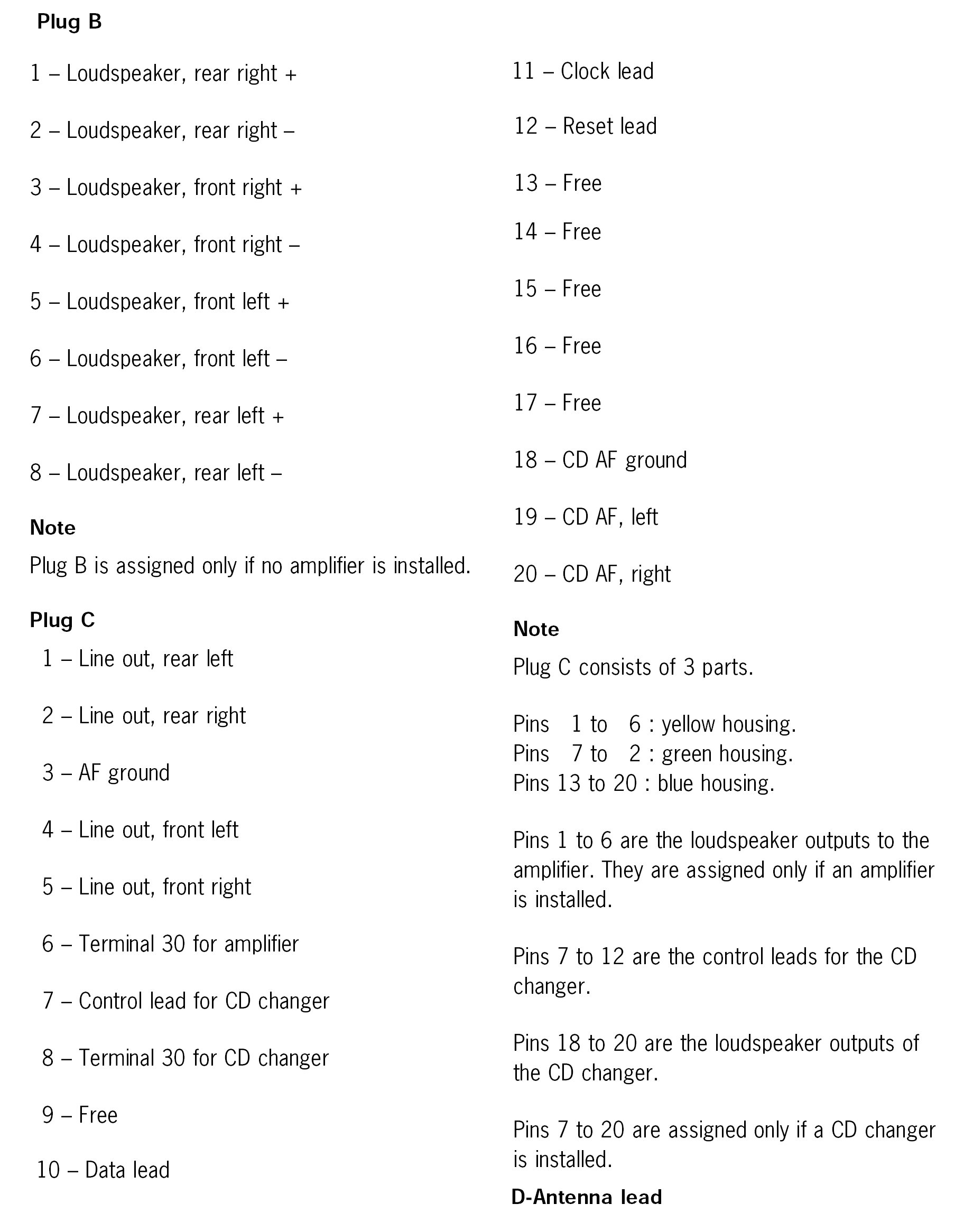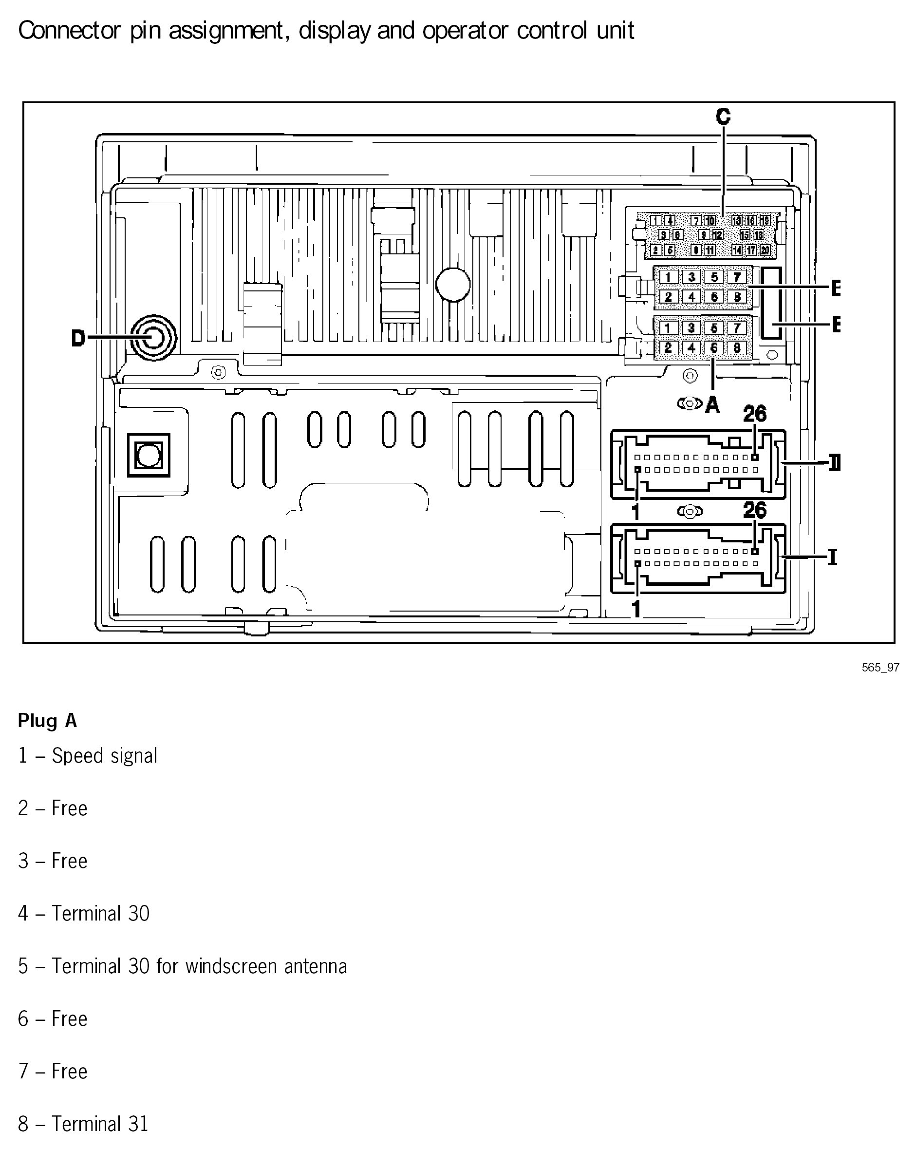 Connector Pin Assignment, Display and Operator Control Unit (PCM)