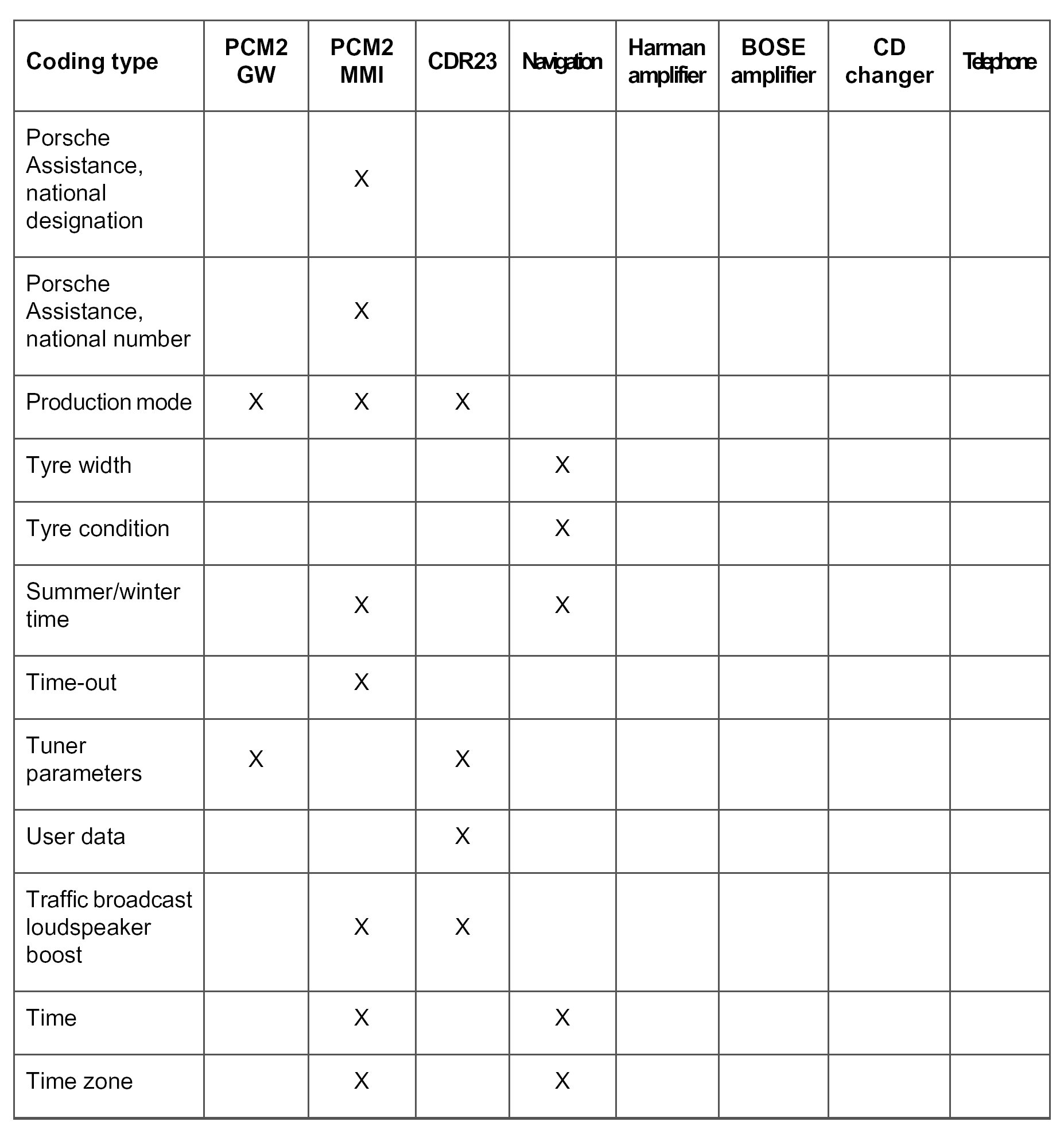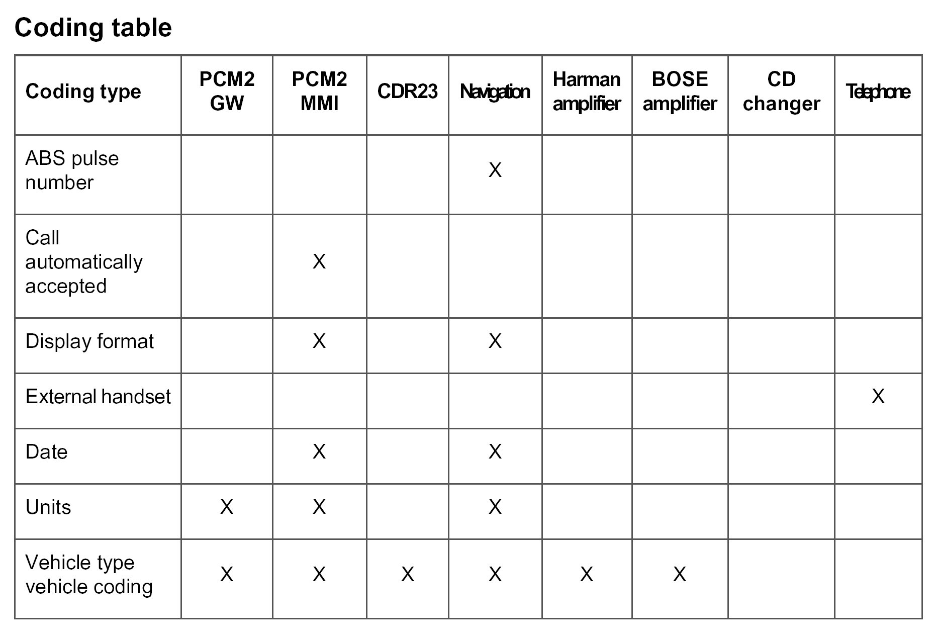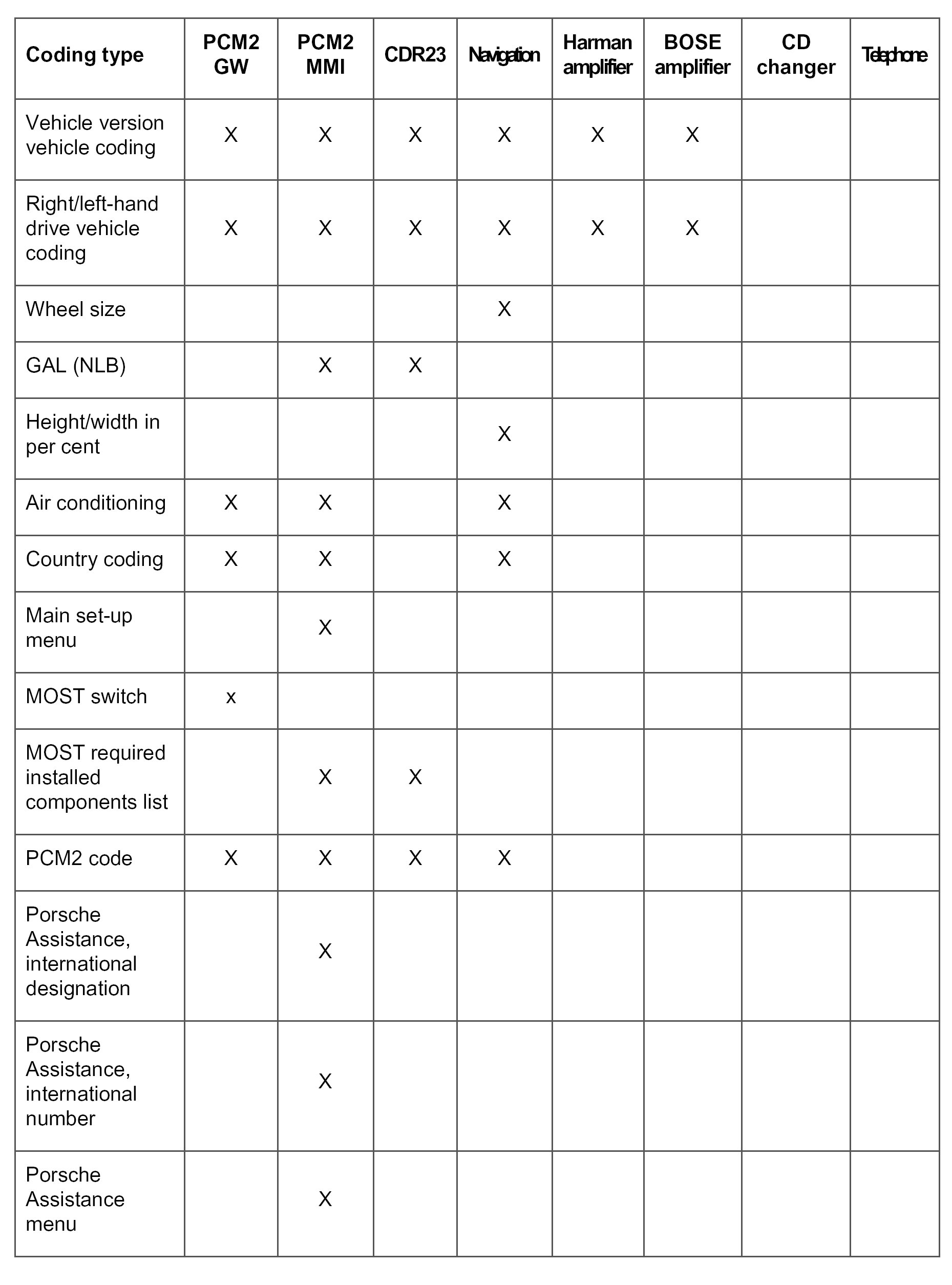 Under the menu item Modify coding, the PCM2 codes can be coded on a vehicle and country-specific basis.