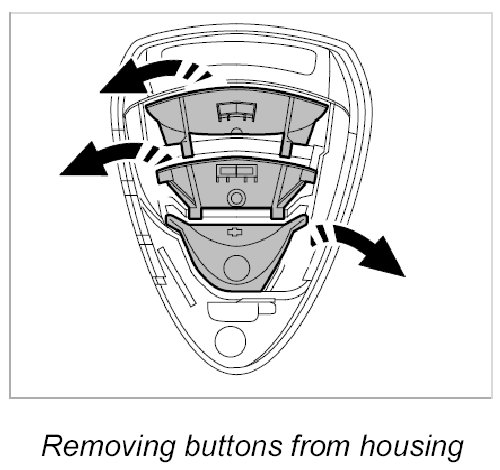 4. Lift up buttons (two or three, depending on the vehicle type) and pull them out of the remote control housing.