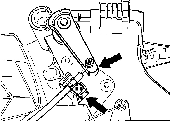 3. Push adjusting lever of the footwell/defrost valve up to its stop and use the retaining clip to fasten the sleeve of the bowden cable to the fastening point.